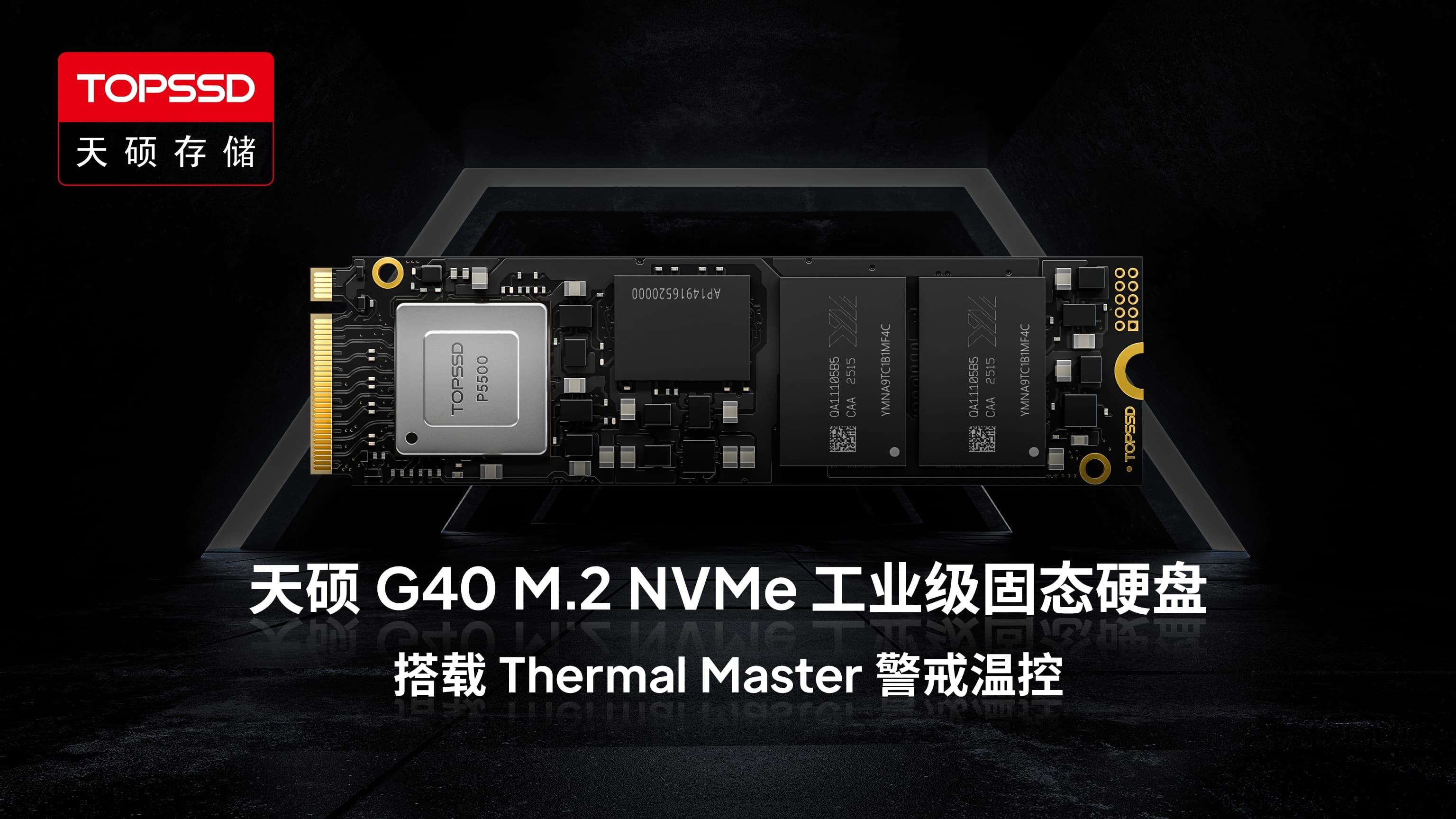 天硕(TOPSSD)G40 M.2 NVMe 工业级固态硬盘,基于自研主控与全链路国产化方案设计,可在 -40℃ 至 85℃ 的宽温区间内稳定运行,并通过军用标准体系验证,在抗冲击、抗振动、防盐雾腐蚀及强电磁兼容等方面具备工程级可靠性。